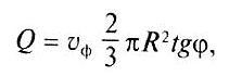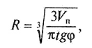 Радиус воронки R находят из объема вынесенного песка: