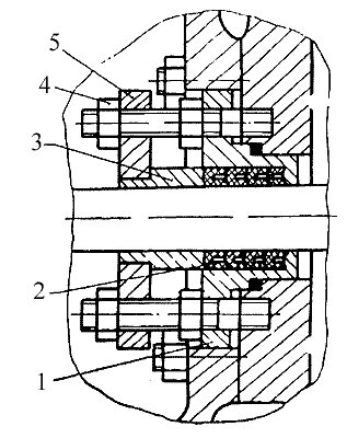 манжета; 3 - втулка нажимного фланца; 4 - гайка; 5 - фланец