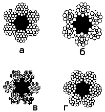 сечения канатов: а — по ГОСТ 3067 - 88; б — по ГОСТ 3068 - 88; в — по ГОСТ 3070