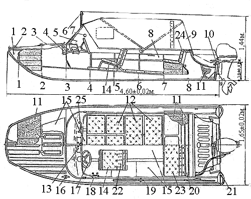 Мотолодка состоит из следующих основных частей: