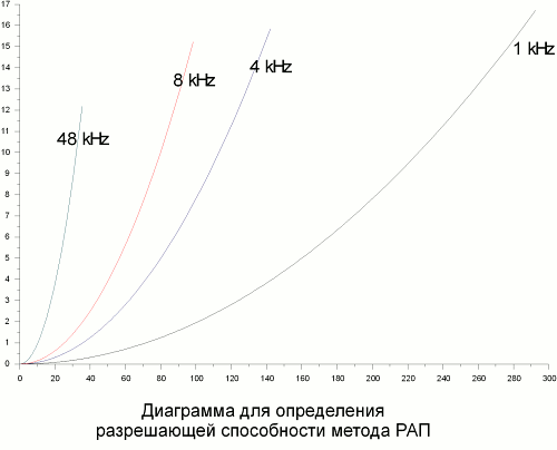 Одно из основных отличий метода резонансно-акустического профилирования от существующих геофизических методов – его чрезвычайно высокая разрешающая способность. Информативная глубинность исследований с методом РАП составляет от 13 см до 2000 м, причем на глубинах первых метров разрешающая способность составляет первые миллиметры.