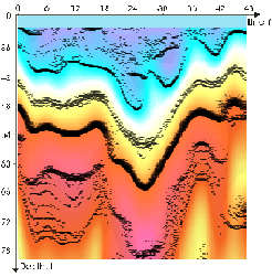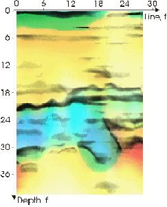 Проведенные методом РАП работы позволили выявить и непосредственно пещеры. Это стало возможным после проведения обработки фазовой составляющей РАП-сигнала. Как видно на рисунках - пещеры выделяются достаточно контрастно и находятся на глубине около 20-30 футов (7-10 метров) от поверхности наблюдения.
