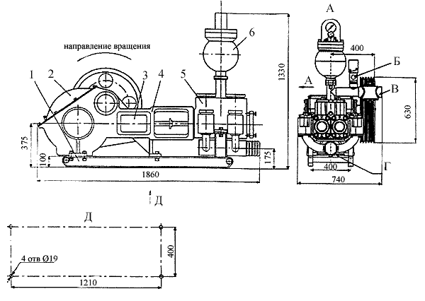 1 - рама; 2 - крышка станины; 3 - крышка; 4 - блок привода; 5 - блок гидравлический; 6 - компенсатор сферический