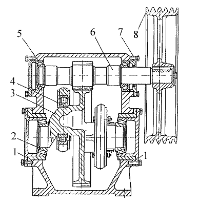 подшипник 2226; 5 - подшипник 7516; 6 - вал трансмиссионный; 7 - прокладка; 8 -