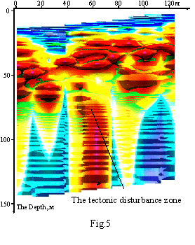 Работы методом РАП, проведенные в 1997 году на одном из объектов Крымского полуострова, показали возможность однозначного и высокоэффективного выделения зон тектонических нарушений (см.рисунок), что позволяет рекомендовать РАП и для решения данной задачи.