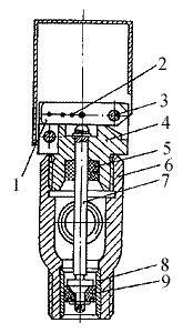 крышка клапана; 5 - амортизатор; 6 - корпус клапана; 7 - шток; 8 - втулка; 9 -