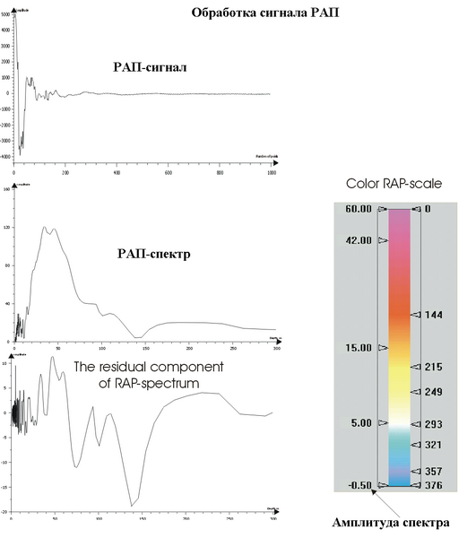 Вычисление частотно-фазовых характеристик сигнала выполняется при помощи программы РАП, обработка и построение геомеханических разрезов – при помощи интегрированной системы компьютерной обработки, визуализации геофизических данных – GDPS. В настоящее время для обработки результатов РАП разработан и применяется программный комплекс «PRIMA», позволяющий получать предварительный геомеханический разрез по профилю наблюдений в течении 2 – 5 минут после получения информации, накопленной аппаратурным комплексом «РАП».