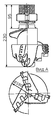 Для повышения ресурса долота (рис. 6) армируют резцами из твёрдого сплава. Диаметр долота на 15-20 мм больше диаметра шнека, чтобы колонна шнеков могла свободно вращаться в скважине, на стенках которой образуется шламовая корка.