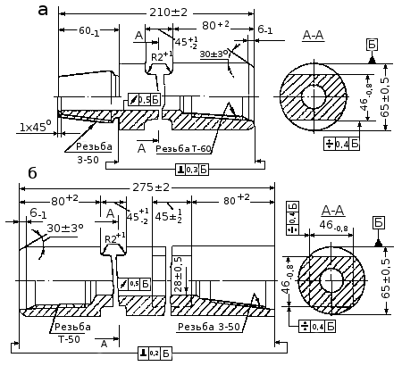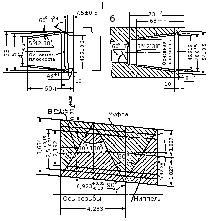 размеры резьбы ниппелы замка: а — ниппель; б — профиль резьбы.