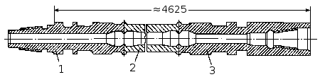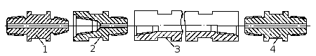 Утяжеленная бурильная труба УБТ-Р-73: 1 — ниппель; 2 — полуниппель; 3 — труба; 4